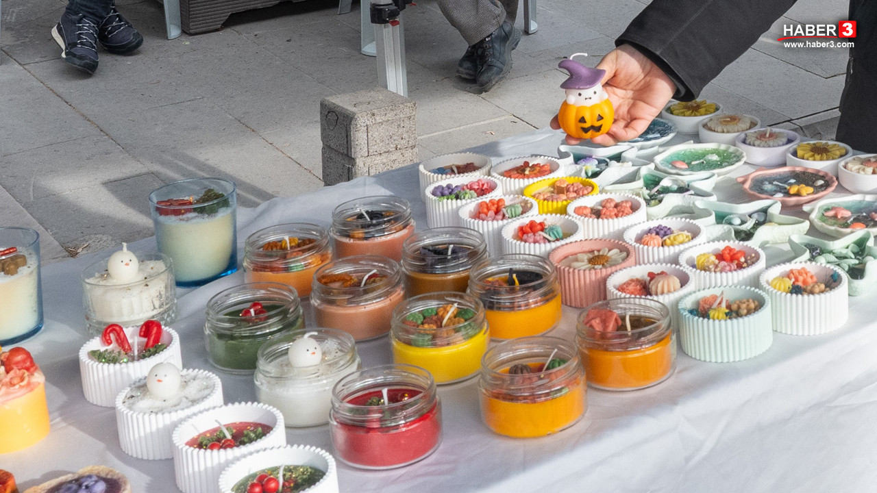 Eskişehir'de evinin bir odasını atölyeye çeviren Rabia Çelik, kendi tasarımı olan kalıplarla ürettiği mumları açtığı stantta sergiliyor. Çelik'in 3D yazıcı desteğiyle hazırladığı estetik mumlar, görselliğiyle vatandaşlardan yoğun ilgi görüyor.