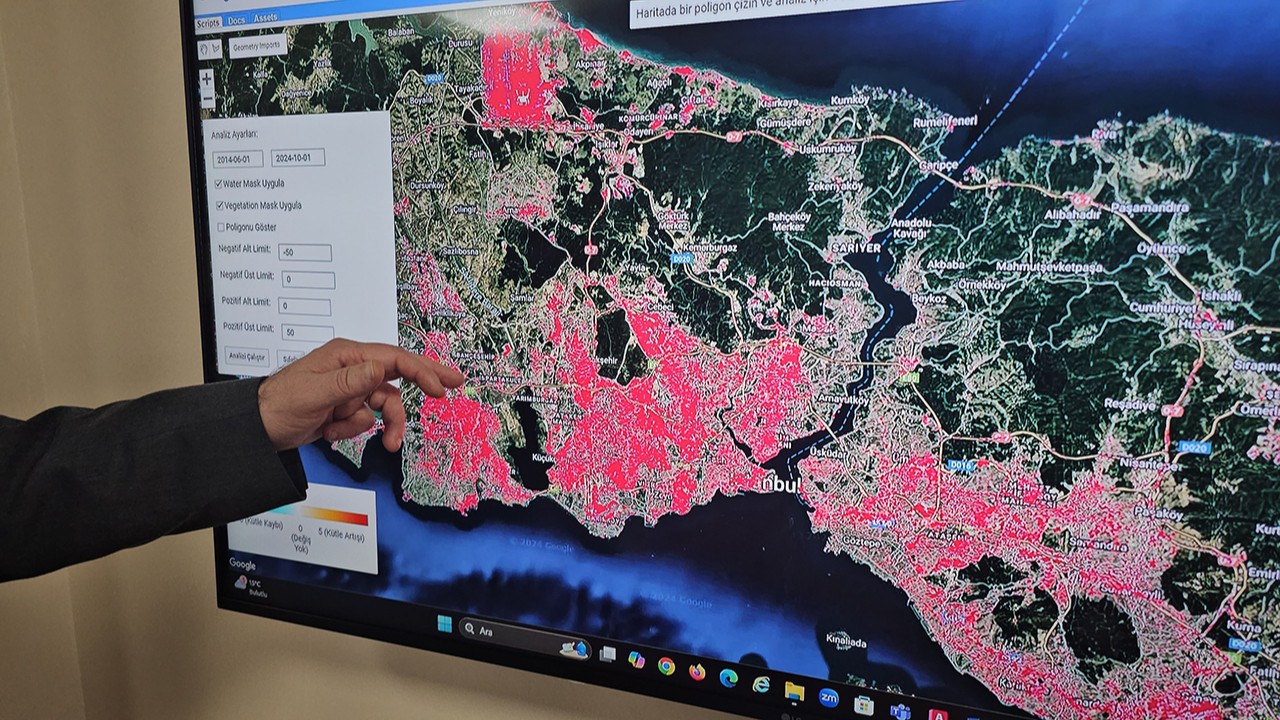 Zonguldak Bülent Ecevit Üniversitesi (BEUN) Geomatik Mühendisliği Öğretim Üyesi Prof. Dr. Şenol Hakan Kutoğlu radar uydu verilerini kullanarak ekibiyle geliştirdiği Küresel Yer İzleme Sistemi ile İstanbul'un 2014'ten bu yana olan kentsel büyümesini inceledi.