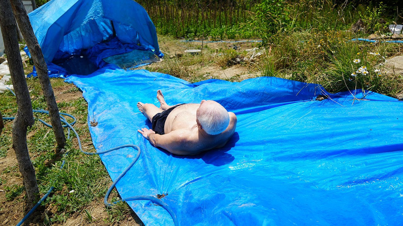 Koronavirüs salgınına kadar yaşadığı İstanbul'a 60 yaşında veda ederek Kastamonu'na yerleşen bir bir vatandaş aşırı sıcaklar sonrasında köyde serinlemek için branda kullanarak kendi aquaparkını yaptı.