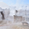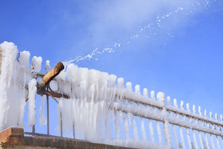 Sivas'ta bulunan ve Denizli'deki Pamukkale'nin kardeşi olarak bilinen sarı renkli travertenleriyle dikkat çeken Altınkale'de, 45 derece sıcaklıktaki termal su, kentteki soğuk havanın etkisiyle travertenlere ulaştırıldığı nokta anında buza dönüşüyor.