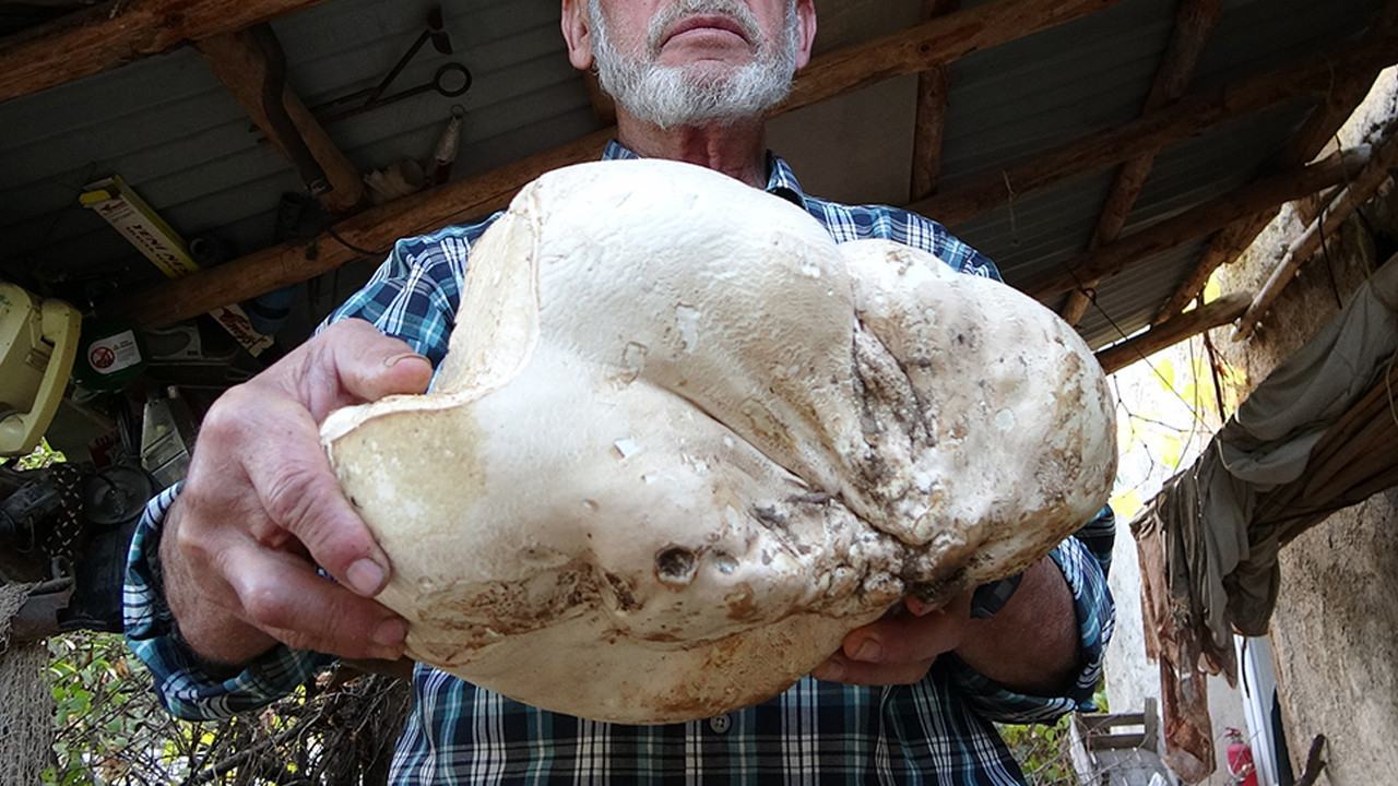 Kütahya'nın Demirciören köyünde yaşayan yaşlı adam, ormanda yaptığı mantar arayışı sırasında dev bir mantar buldu.