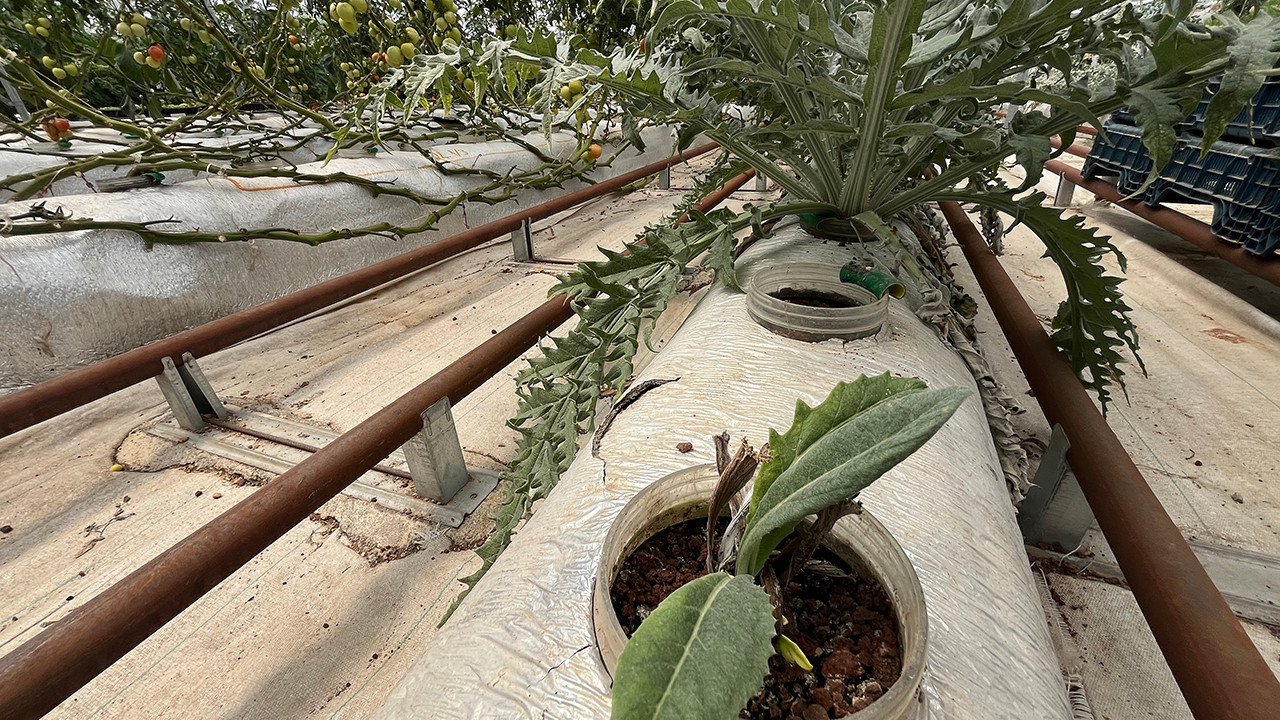 Kocaeli'de bir dönümlük serada ham maddesi Türkiye’de olan ve yapılan testlerden insan ve bitki sağlığına zararı bulunmadığı tespit edilen volkanik cüruf kullanılarak topraksız tarım yapılıyor.