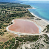 Çanakkale'nin Ezine ilçesinde yılın belli dönemlerinde pembe ve kırmızıya yakın tonlara bürünen ve kalp şekli ile dikkati çeken 'Kalpli Göl', dronla havadan görüntülendi.