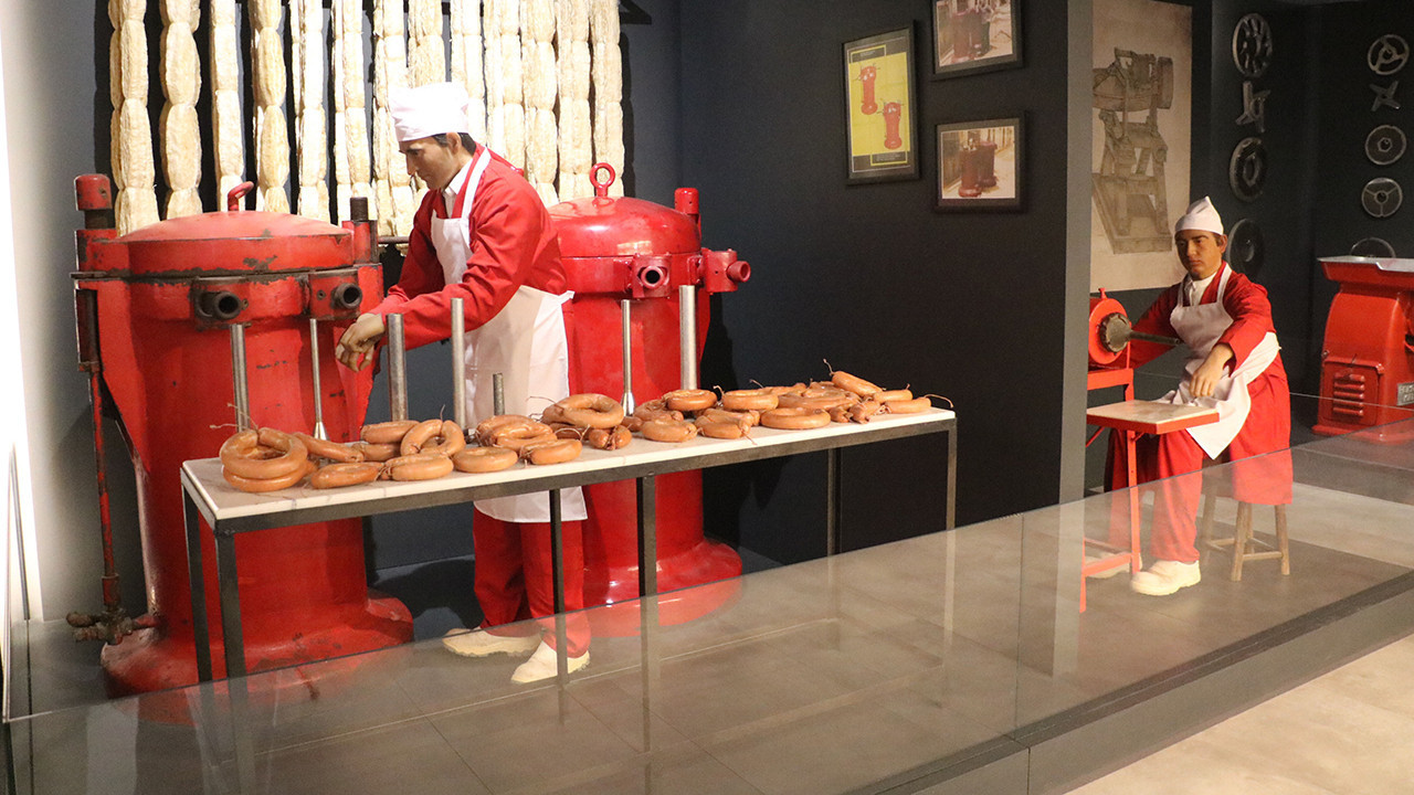 Müzede sergilenen ürünler arasında 100 yıllık geçmişe dayanan ahşaptan kıyma makinesi, bıçaklar, masatlar, sucuk dolum makineleri yer alıyor.