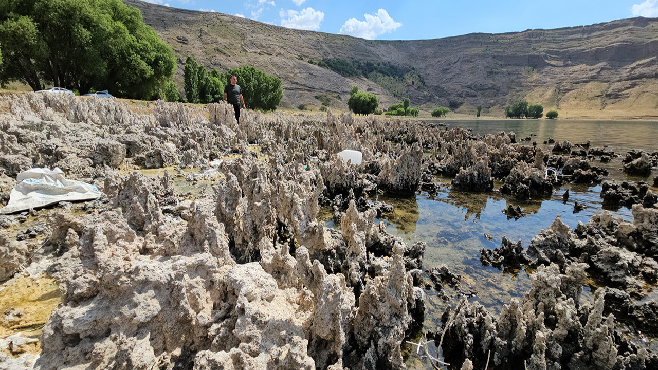 Geçen yıl bölge, önceki yıllara oranla daha fazla yağış almasına rağmen Van Gölü'nde suyun yükselmesi istenen seviyede olmadı. Göl suyunun çekilmesiyle, göl tabanındaki mikrobiyalitler de gün yüzüne çıkıyor.