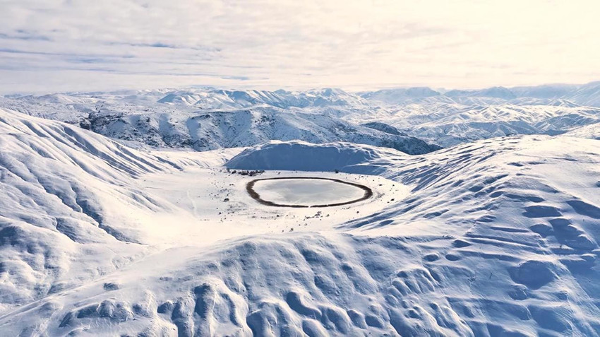 İliç ilçesine bağlı Boyalık ve Hasanova köyleri arasında yer alan ve yaklaşık 350 metre çapındaki dairesel yapısıyla dikkat çeken göl, soğuk hava nedeniyle dondu.
