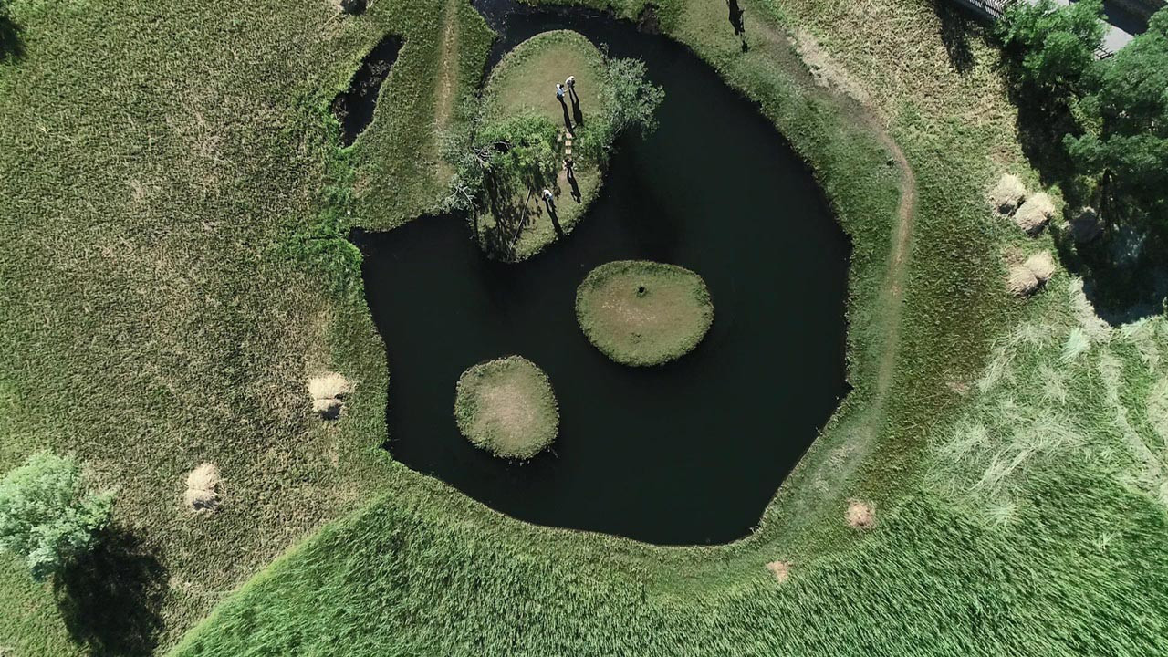 3 tarafı dağ ve tepelerle çevrili düz zemin üzerindeki gölde, rüzgarın etkisiyle birbirinden bağımsız yüzen 3 ada bulunuyor.