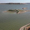 Tekirdağ'daki Karaiğdemir Barajı'nda kuraklık nedeniyle su seviyesi kritik seviyeye geriledi ve baraj gölündeki suların çekilmesiyle adacıklar ortaya çıktı.