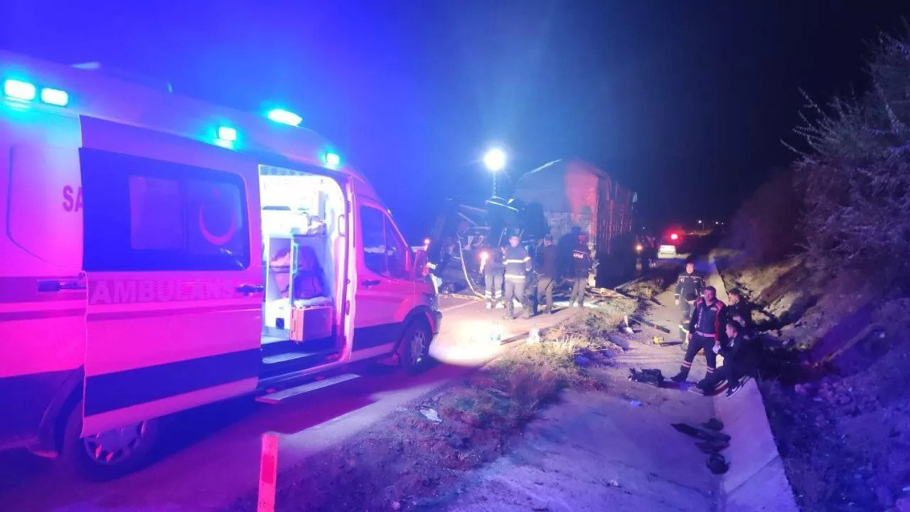 Amasya Merzifon'da, önceki gün saat 23.30 sıralarında Çaybaşı köyü mevkiinde, Çorum'da 'Baş Belası' adlı tiyatro oyununu sahneledikten sonra Samsun'a gitmek için yola çıkan oyuncuları taşıyan Aykut Bektaş (28) yönetimindeki minibüs, önünde giden A.K. kontrolündeki TIR'a çarptı.