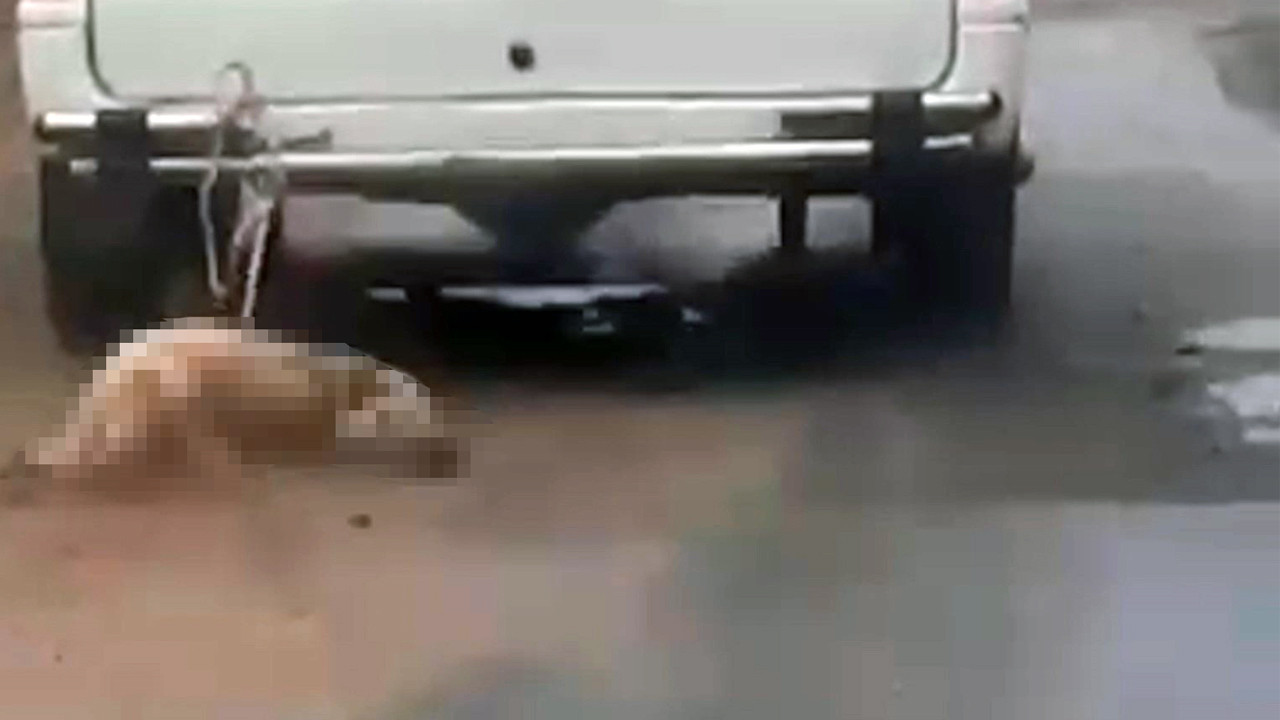 Aracının arkasına bağladığı köpeği kilometrelerce sürükledi