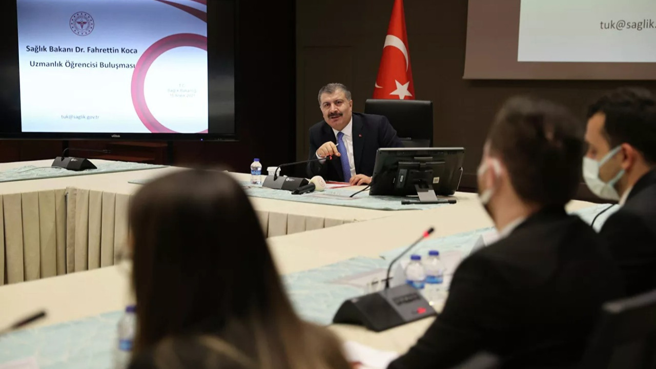 Sağlık Bakanı Fahrettin Koca, tıp öğrencileriyle buluşmasının ardından bu kez farklı üniversitelerde uzmanlık eğitimine devam eden asistan hekimlerin temsilcileriyle bir araya geldi.