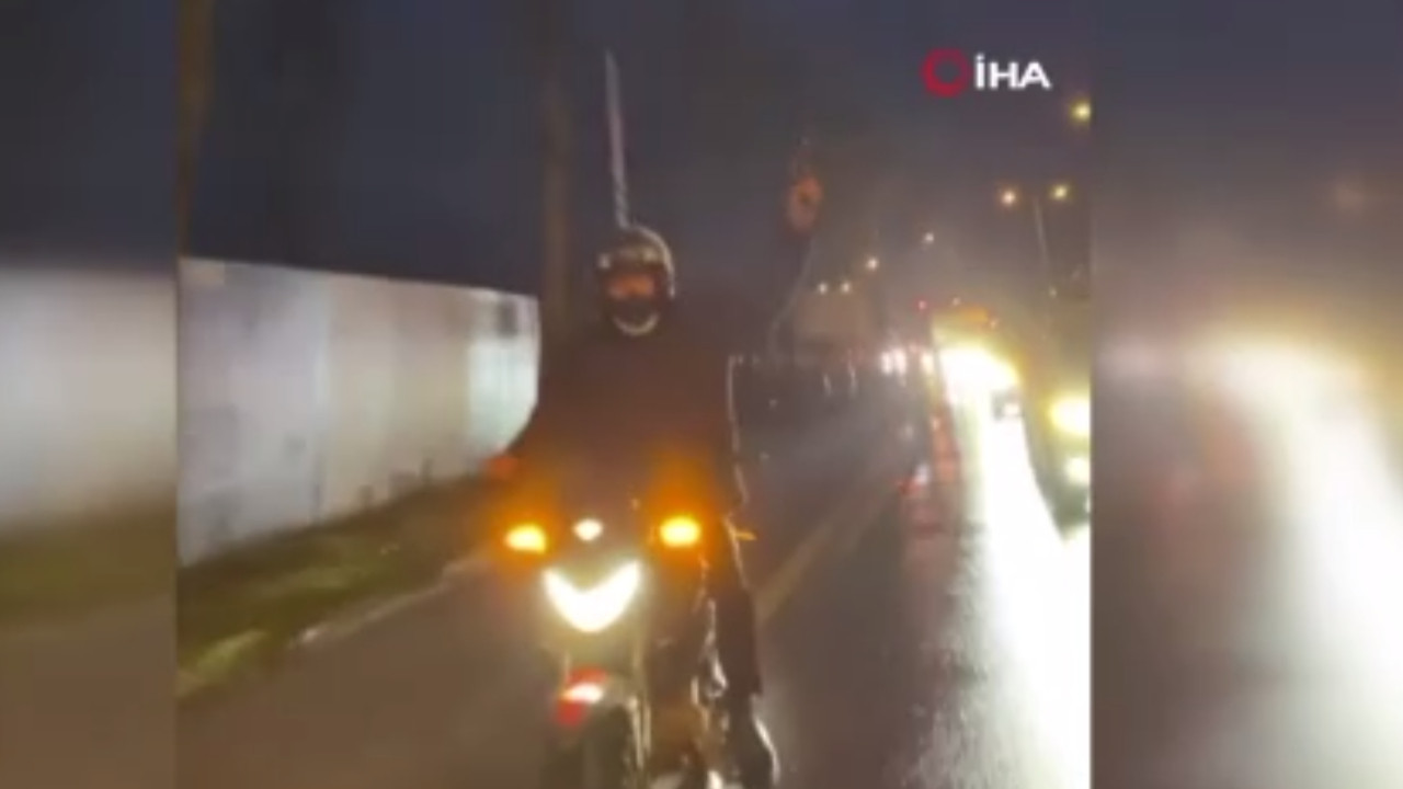Bu da motosikletli maganda! Ateş aça aça sürdü