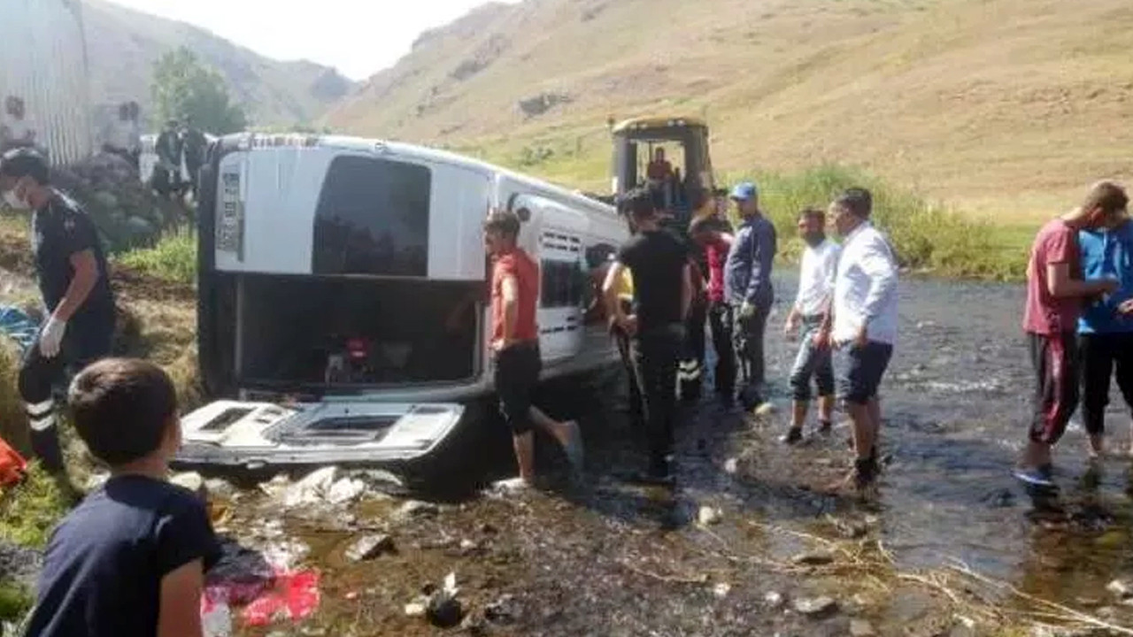 Kaza, sabah saatlerinde Eleşkirt ilçesi Sarıcan Deresi mevkisinde meydana geldi. Ağrı'ya düğüne katılmak üzere Adıyaman'dan gelenlerin bulunduğu 02 DB 220 plakalı minibüs, ismi öğrenilemeyen sürücüsünün kontrolünden çıkıp dereye devrildi.