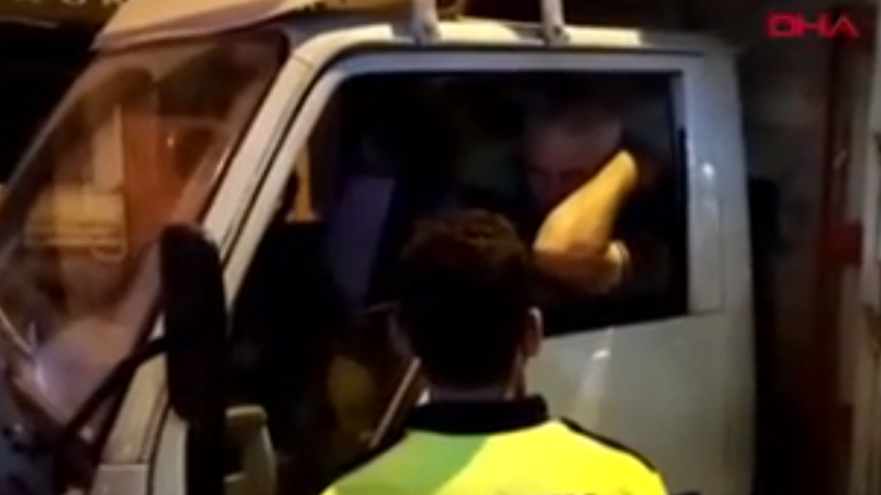 Aracın yanına giden polis, sürücünün direksiyon başında uyuduğunu gördü. Uzun uğraşlar sonucu uyandırılan sürücü İbrahim C.’, yapılan alkol testinde 2.43 promil alkollü olduğu tespit edildi.