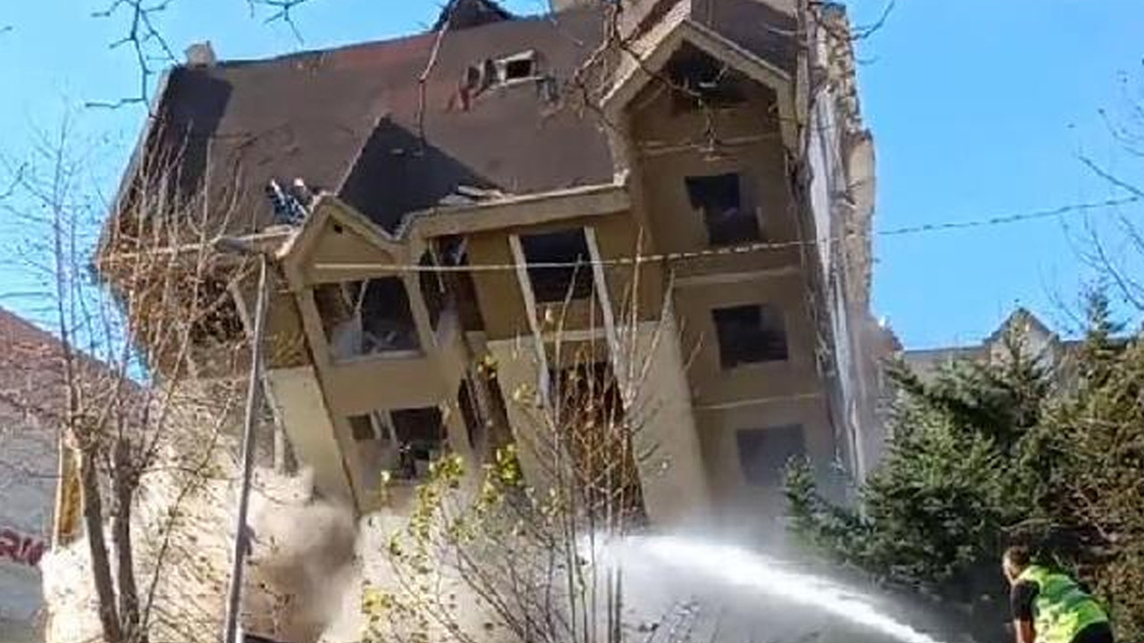 Abone Olİstanbul'un Esenyurt ilçesinde 6 katlı bir bina yıkım sırasında caddeye doğru çöktü.