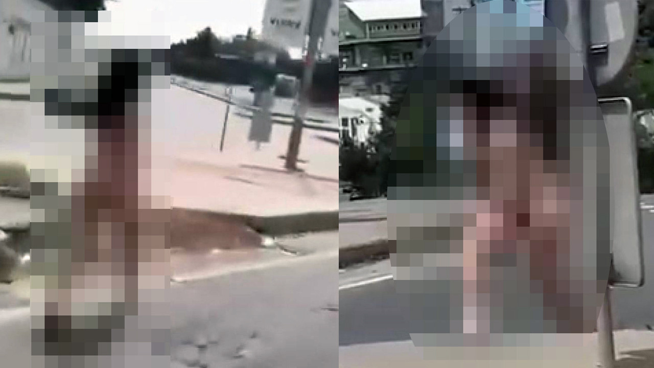 Olay, öğle saatlerinde Başakşehir'de meydana geldi. Bir kadının asfalt yolda çıplak olarak yürüdüğü anlar bir motosikletli tarafından kask kamerası ile görüntülendi.
