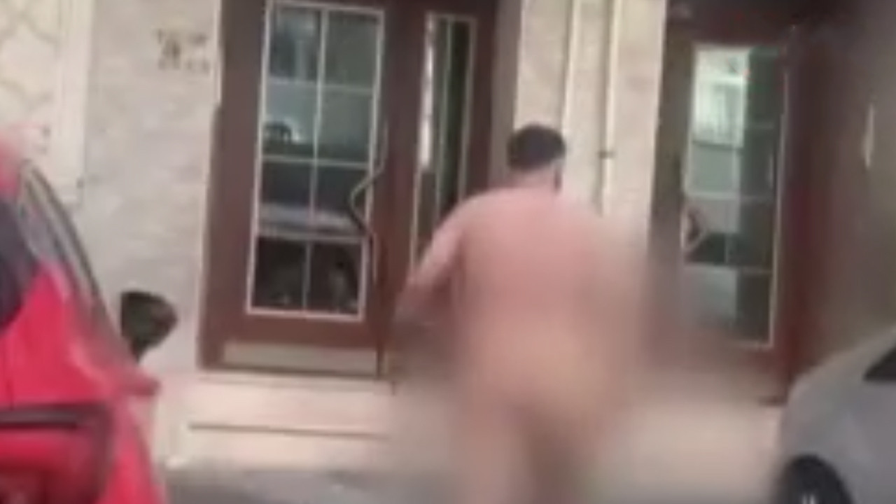 Vatandaşların ihbarı üzerine sokağa gelen polis, şahsı gözaltına aldı. A.B.'nin çıplak gezdiği o anlar ise çevredeki vatandaşların cep telefonu kamerasına yansıdı.