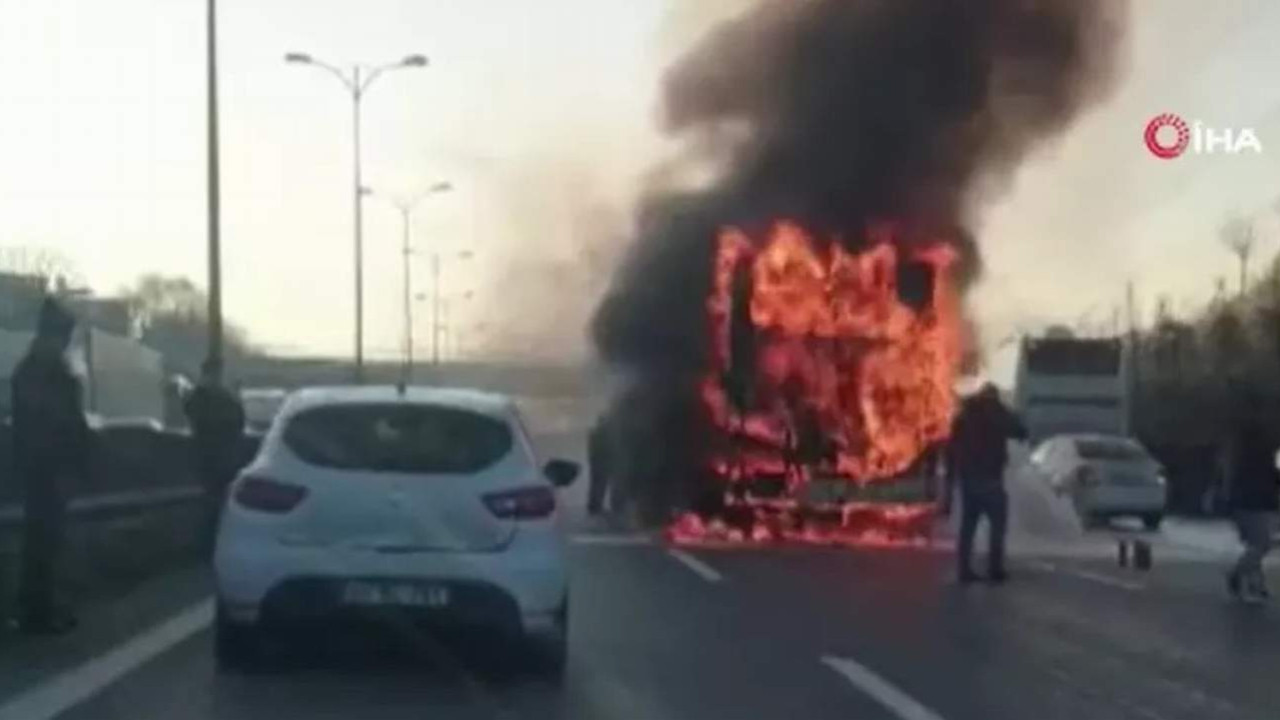 İstanbul'da yolcu otobüsünde yangın çıktı