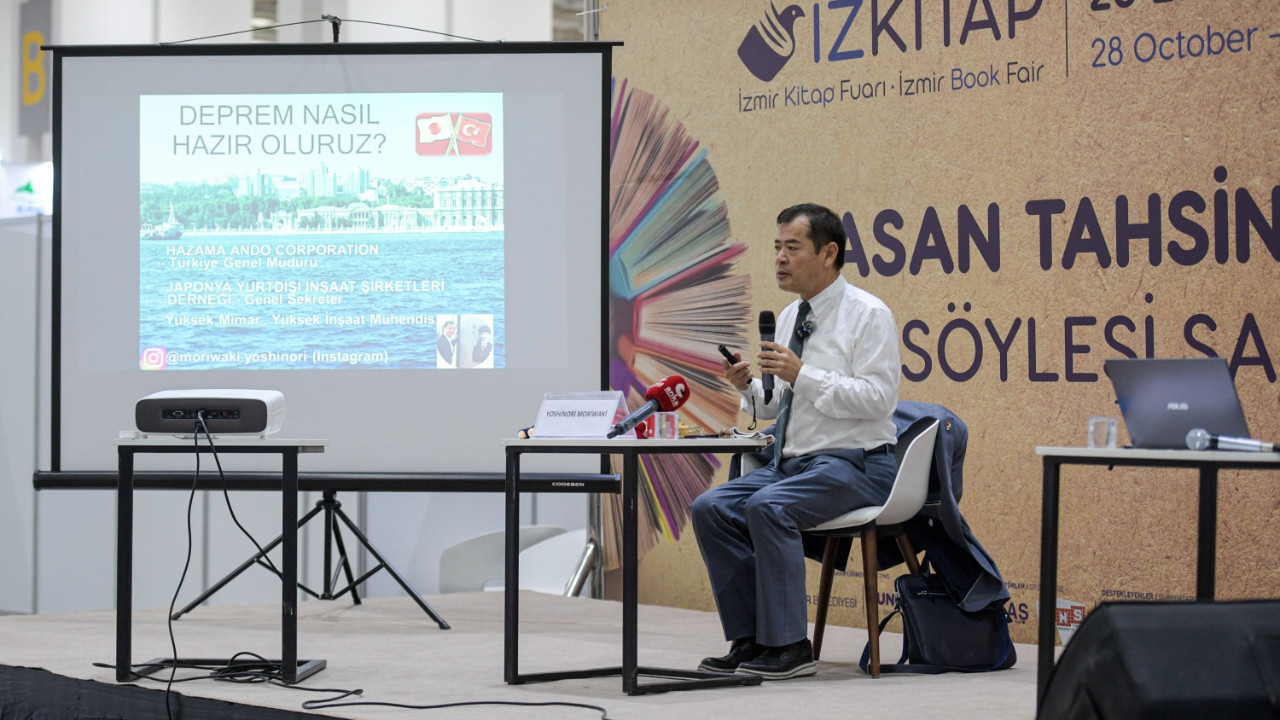 Japonya Yurtdışı İnşaat Şirketleri Derneği Genel Sekreteri, Yüksek İnşaat Mühendisi Joshinori Moriwaki, İZKİTAP-İzmir Kitap Fuarı’nda düzenlenen “Depreme hazır mıyız Türkiye?” etkinliğine konuşmacı olarak katıldı.