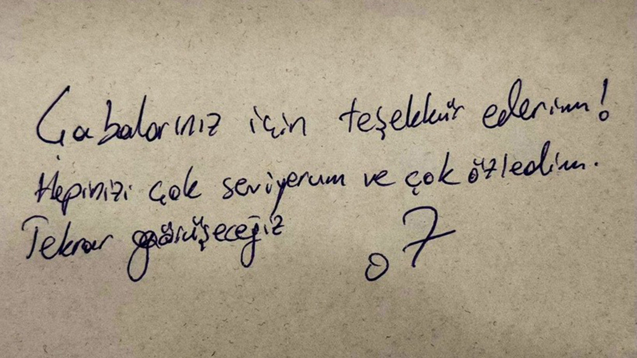 Notunda asker selamı işareti yapan Ahmet Sonuç "Çabalarınız için teşekkür ederim. Hepinizi seviyorum ve çok özledim. Tekrar görüşeceğiz" ifadelerini kullandı.