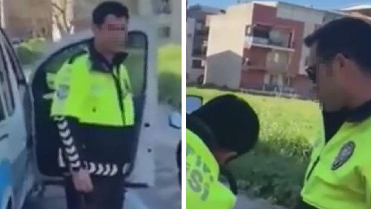 İzmir'de polis ekipleri ünlü bir online alışveriş sitesinin motokuryesini durdurdu. İki polis, şahsın üzerini ve motosikleri arayıp ehliyet istedi.