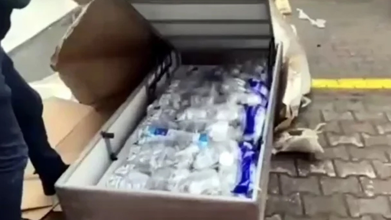 Baza ve televizyon sehpası içine gizlenen 56 kilo skunk ve 24 kilo 150 gram esrar ile 1 ruhsatsız tabanca geçirildi.