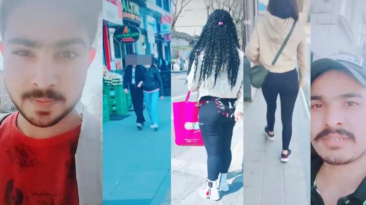 TikTok’ta “@mayanmalik46” kullanıcı adıyla paylaşım yapan bir kişinin, paylaştığı videoda önce yürüyen kadınları arkadan çektiği, daha sonra kamerayı kendisine çevirerek dudaklarını ısırıp bıyık burktuğu görüldü.