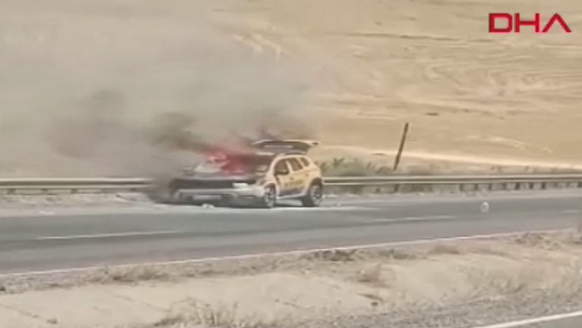 Şoförü yol kenarında durdurarak araçtan çıkarken, ihbarla olay yerine itfaiye ve jandarma ekipleri sevk edildi.