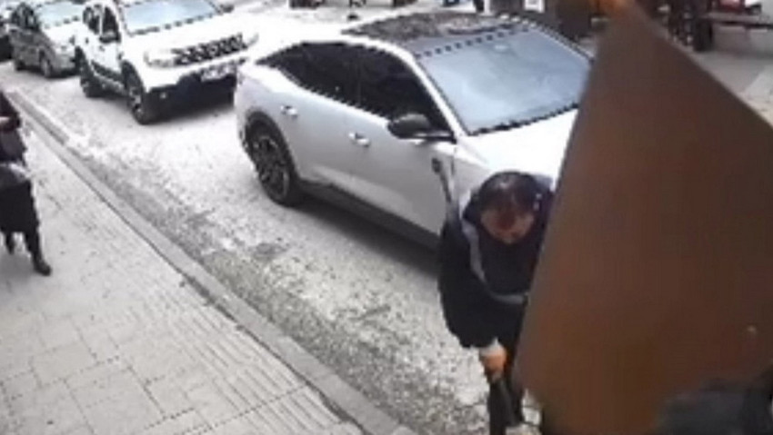 Öte yandan bölgede bulunan bir iş yerinin güvenlik kamerası, olay anlarını kaydetti. Kaydedilen görüntülerde temizlik görevlisi Fahrettin B.'nin cadde üzerinde çalıştığı esnada, tabelanın başına isabet ettiği, elindeki temizlik malzemesinin düştüğü ve aldığı darbe sonucu başını tutarak çömeldiği görülüyor. Bu esnada vatandaşların Fahrettin B.'nin yanına gelerek, yardımcı oldukları anlar da kaydedilen görüntüler arasında yer alıyor.