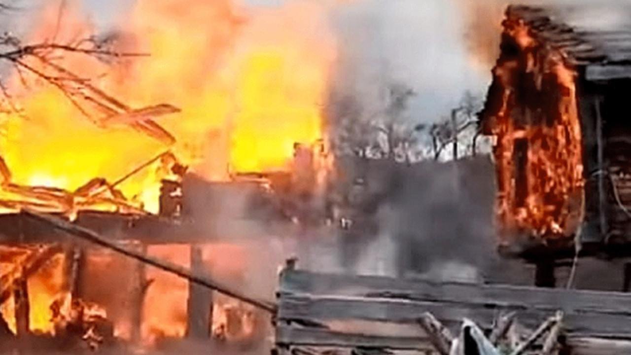 Soğutma işlemlerinin sona erdiği yangında 1 ev, 1 ahır ve 1 ambar küle döndü.