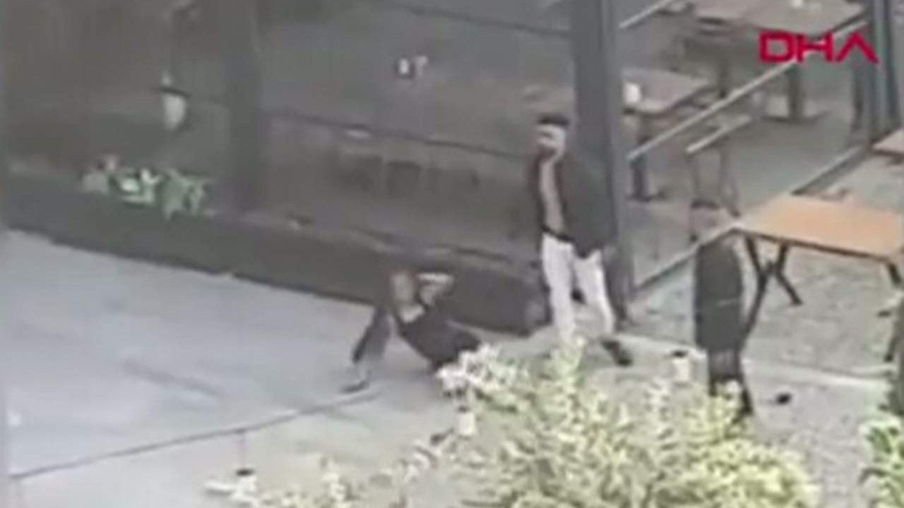 Görüntülerde yerde oturan kadını saçından sürükleyen genç adamın, daha sonra başına ve yüzüne defalarca yumruk atarak darbettiği görülüyor. Kendisini engellemeye çalışan arkadaşını da iten kişi, bu sırada çevredekilere de küfür ve hakaretler savurarak, ‘Çağırın polisi, polis gelsin’ diye bağırdı. Arkadaşına da küfür ederek, uzaklaşan alkollü kişi daha sonra elindeki cep telefonunu kadının önünde oturduğu kafenin camına fırlattı.