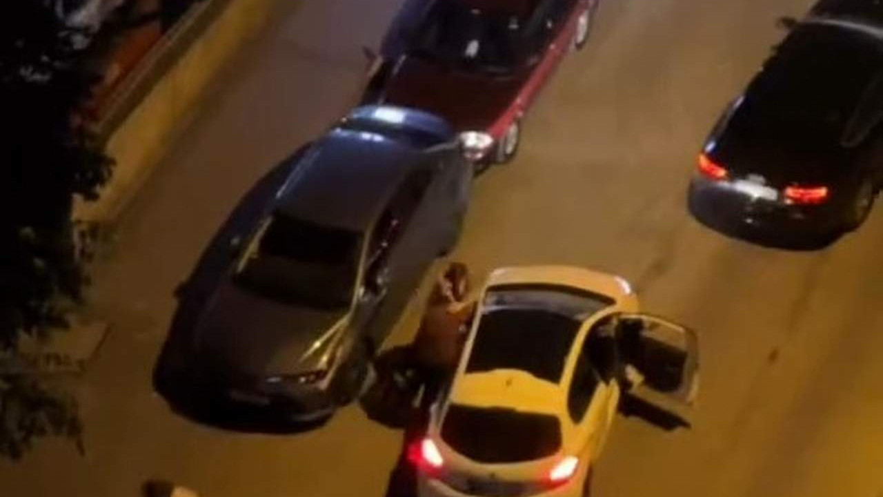 O anlar ise çevredeki bir vatandaşın cep telefonu kamerasına anbean yansıdı. Görüntülerde sokak üzerinde iki aracın durduğu ve o araçtaki kişilerin yumruk ve tekmelerle birbiriyle kavga ettiği görülüyor.