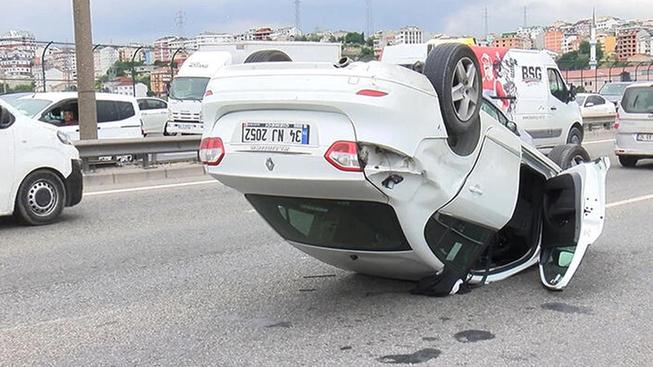 Abone Olİstanbul Bahçeşehir'de TEM Otoyolu Ankara istikametinde önündeki araca çarpan aracın takla atması sonucu her iki yönde de trafik kilitlendi.