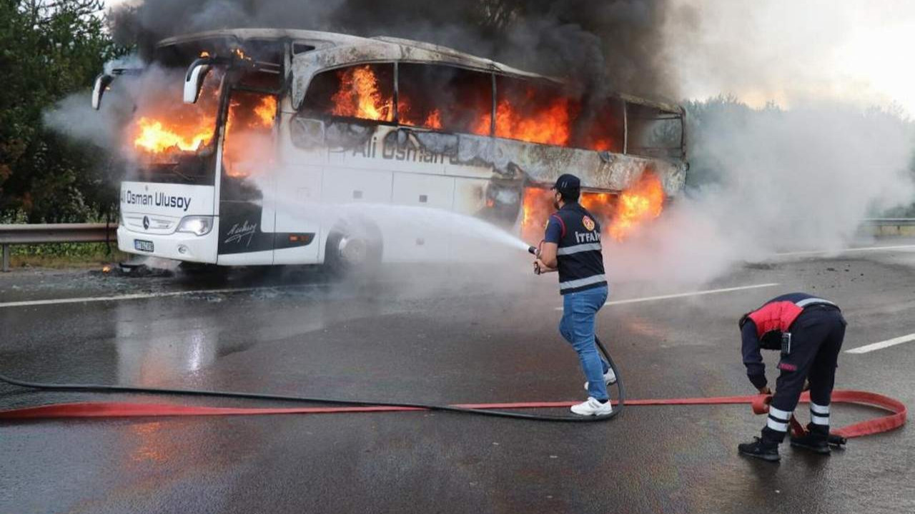 Yangın sebebiyle TEM'in İstanbul yönü trafiğe kapatıldı. Yanan yolcu otobüsünde yapılan soğutma çalışmasının ardından trafik yeniden normale döndü.