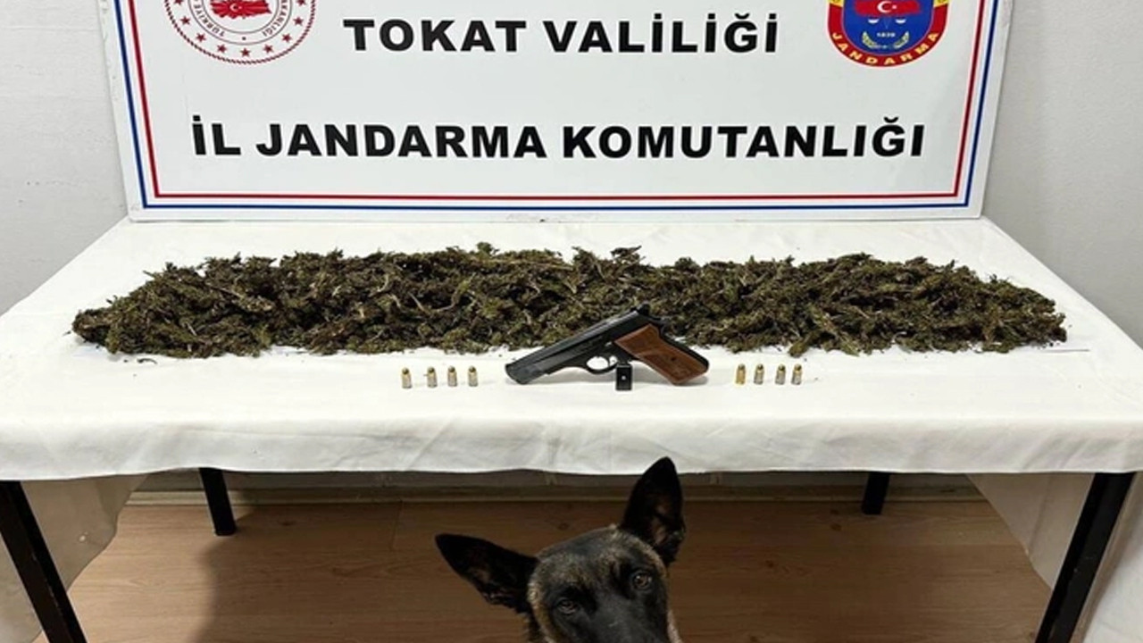 Abone OlTokat'tın Niksar ilçesinde bir araçta yapılan aramada araç içerisinde 1 adet tabanca ve 2 kilo 300 gram esrar ele geçirildi.