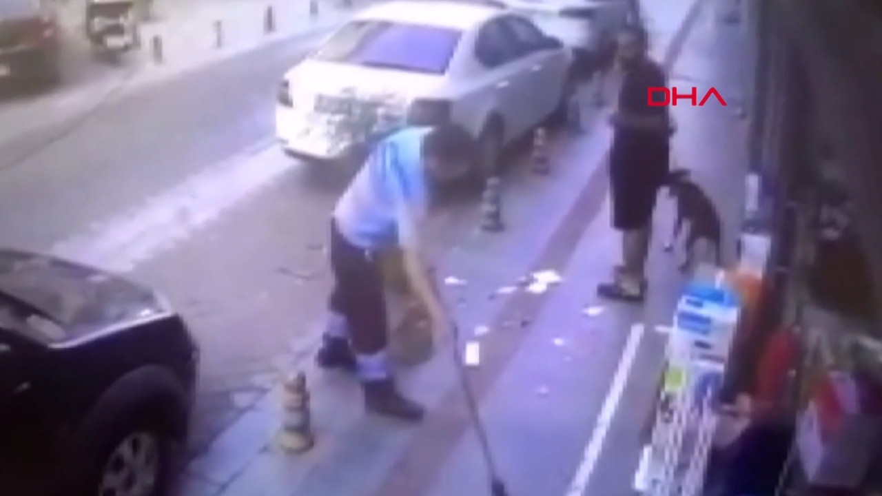 Kadıköy Rasimpaşa Mahallesi'nde dün öğlen saatlerinde meydana gelen olayda, iddiaya göre belediyenin temizlik işçisi Aydın Coşkun, kaldırımı süpürdüğü sırada köpeğiyle yürüyen bir kişi, köpeğine toz geldiğini iddia ederek Çoşkun'la tartışmaya başladı.