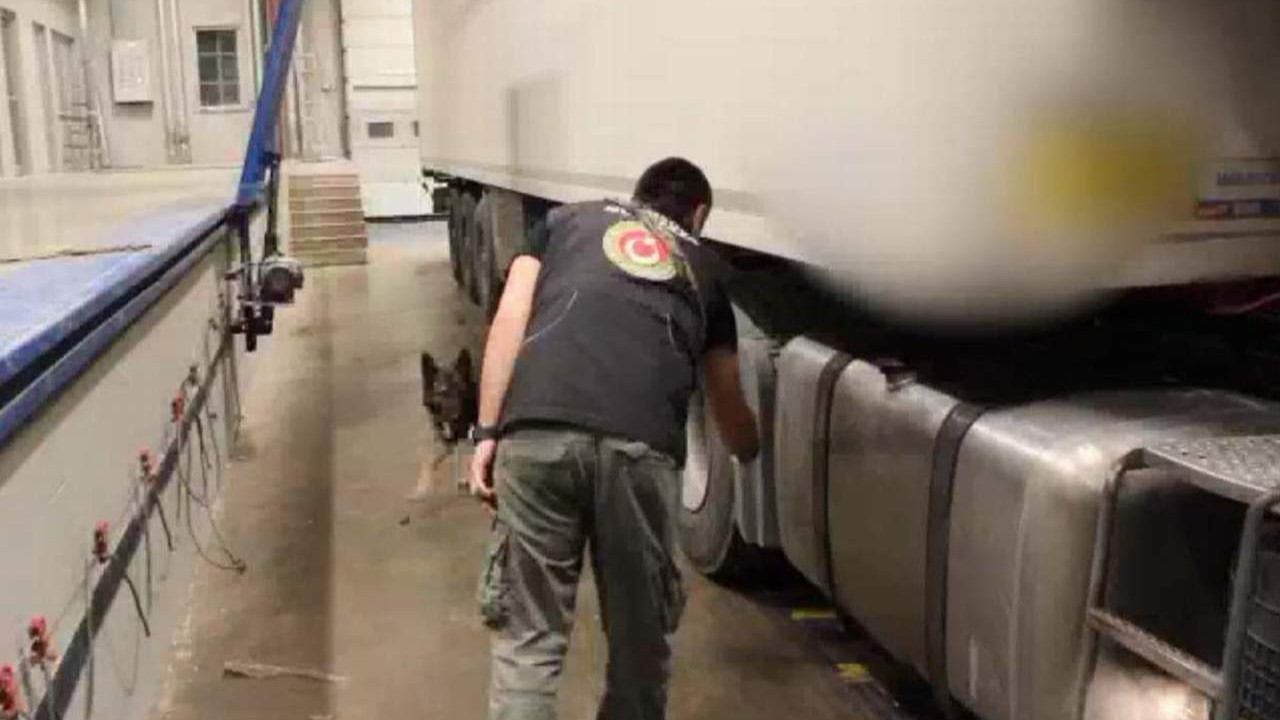 X-ray taramasında, dorsesinde bulunan soğutucu motorunda şüpheli yoğunluk görülmesi üzerine araç, detaylı aranması için arama hangarına alındı. Gümrük Muhafaza ekipleri, dedektör köpeklerini de kullanarak arama yaptı.