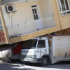 Abone Olİskenderun ilçesinde deprem nedeniyle yan yatan 5 katlı binanın kamyonet sayesinde ayakta kaldığı görüldü.