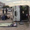 Sürücüsünün ismi henüz belirlenemeyen tarım işçilerini taşıyan midibüs, Levent Mahallesi Sümbül Caddesi'nde kaldırıma çarptıktan sonra devrildi.