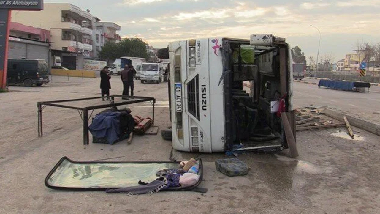 Adana'da tarım işçilerini taşıyan midibüsün devrildi