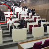 Oylama sırasında yaşanan gerginlik sırasında arka sıralarda oturan AK Partili Meclis Üyesi Hacer Çınar, Başkan Özcan’a su dolu pet şişeleri fırlattı. Şu şişesi Özcan’ın yanından geçti. Zabıta memurları kürsünün önünde önlem aldı.