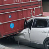 TIR sürücüsü Sinan Ö., "4 metre yazıyordu bir tarafı kurtardı biraz frene bastım konteyner üste vurdu. Arkada araba varmış. Allah'tan onda bir şey yoktu. Otomobildekini arka kapıdan çıkarttık, gelip oturdu. Telefonla görüntülü biriyle konuştu. Ambulans geldi sedyeye bindirdiler sonra hastaneye götürüldü. Durumu ağır değildi biraz kanama vardı yüzünde" dedi.