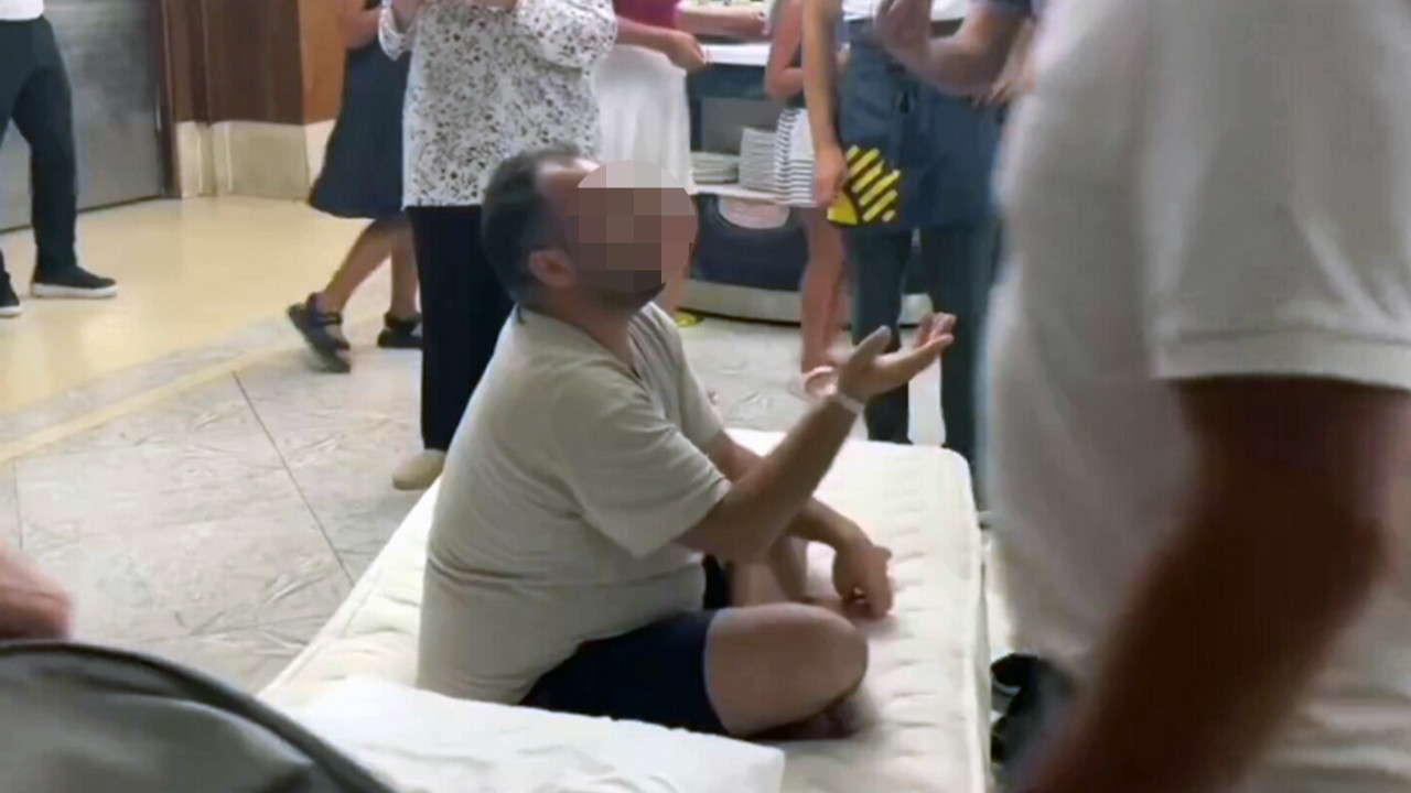 Türkiye'nin turizm başkenti Antalya'nın Belek ilçesinde bulunan bir otelde klima arızası sonrası Rus turistlere yeni oda verilirken kendisine yeni oda verilmeyen Türk turist yatağını yemekhaneye götürdü.