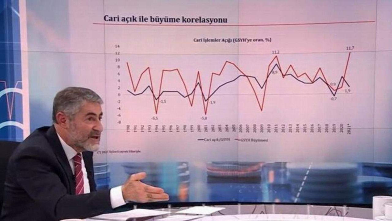 Şu grafik tarihi dönümün grafiğidir. Türkiye'nin yeni ekonomi modelini inşa etmesinin sebebi budur. Bugünkü cari açık 12 milyar dolar civarında geliyor. Bu Türkiye'nin cari fazlaya doğru gittiğini gösteriyor. Cari fazlaya gitmese bile Türkiye için 12 milyar dolar nedir?