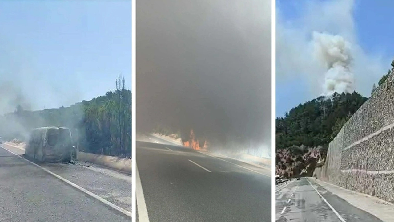 Balıkesir'de minibüste çıkan yangın ormana sıçradı