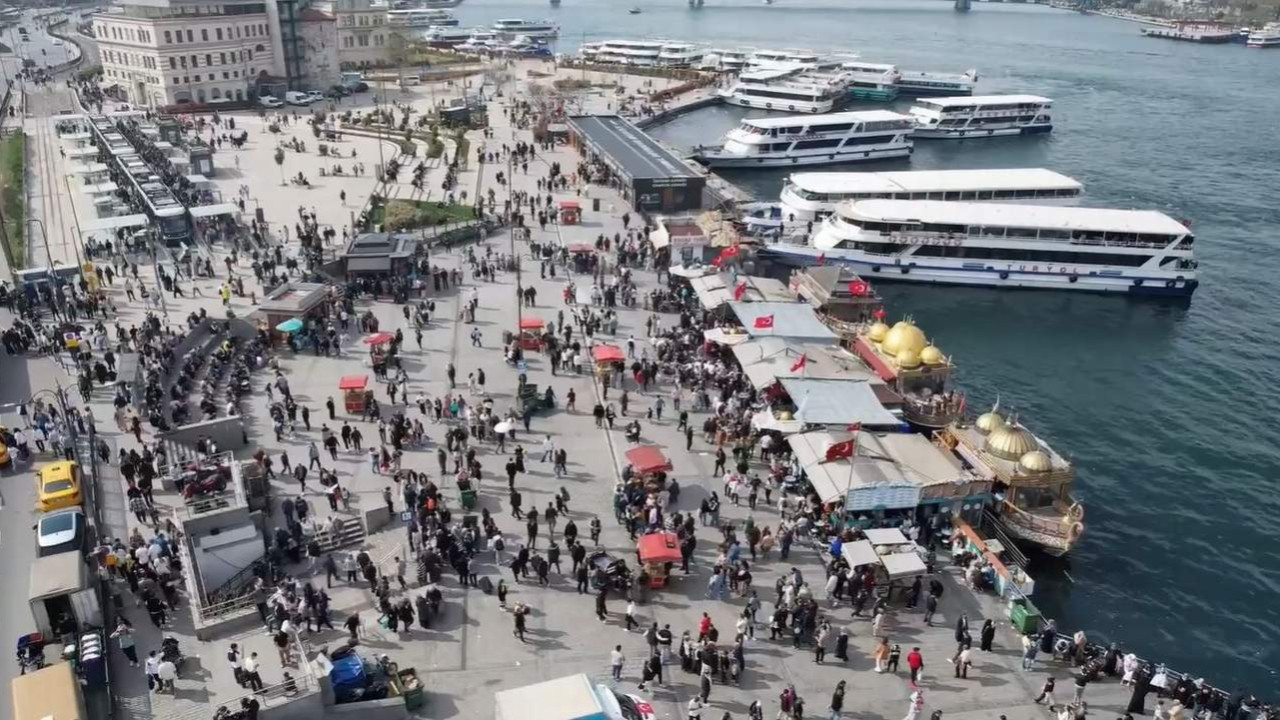 Ramazan Bayramı’nda güneşli havayı fırsat bilen yerli ve yabancı turistler, Eminönü’ne akın etti. Havanın güzel olmasıyla park, vapur iskeleleri ve meydanlar adeta doldu taştı. Öte yandan tarihi semtte yaşanan yoğunluk, havadan görüntülendi.