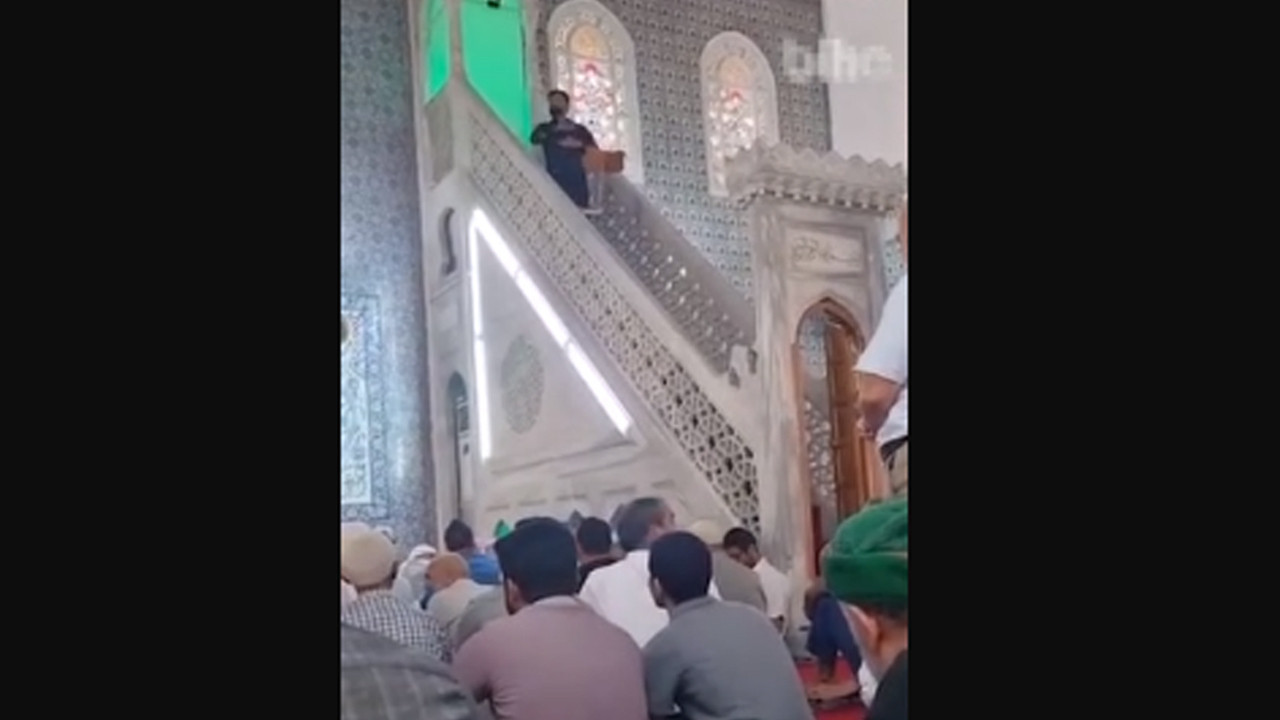 O sırada bir vatandaş konuşan şahsa tepki gösterirken adam konuşmasını sürdürmek istedi. Daha sonra güvenlik görevlisinin aşağı indirdiği şahıs, namazını kıldıktan sonra camiden çıktı.
