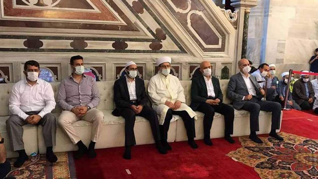 Nakşibendi tarikatına bağlı Kemal Efendi Vakfı’nın yöneticileri ve AK Parti’li isimler, minberin yanına yerleştirilen koltuklarda, diğer davetliler ise yerde oturdu. İstanbul Müftülüğü’nün himayesinde gerçekleşen hafızlık icazet merasimine, Kurtulmuş’un yanı sıra AK Parti Fatih teşkilatı yöneticileri de katıldı.