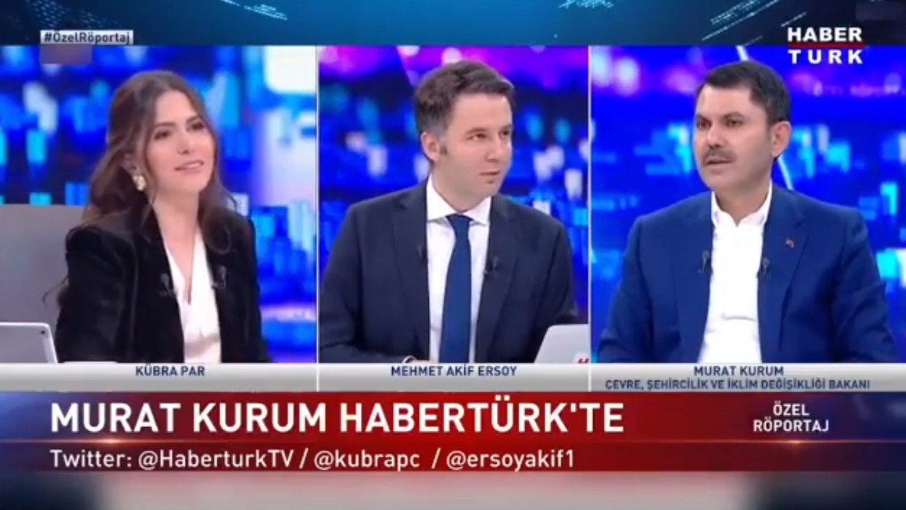 Çevre, Şehircilik ve İklim Değişikliği Bakanı Murat Kurum, Habertürk canlı yayınında Kübra Par ve Mehmet Akif Ersoy'un sorularını yanıtladı.