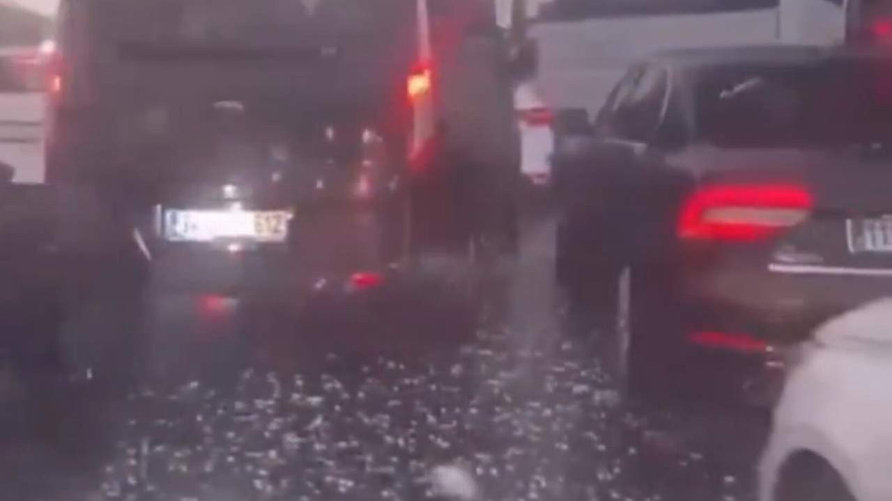CHP Genel başkanı Özgür Özel'in konvoyu Tekirdağ Hayrabolu'da doluya yakalandı.